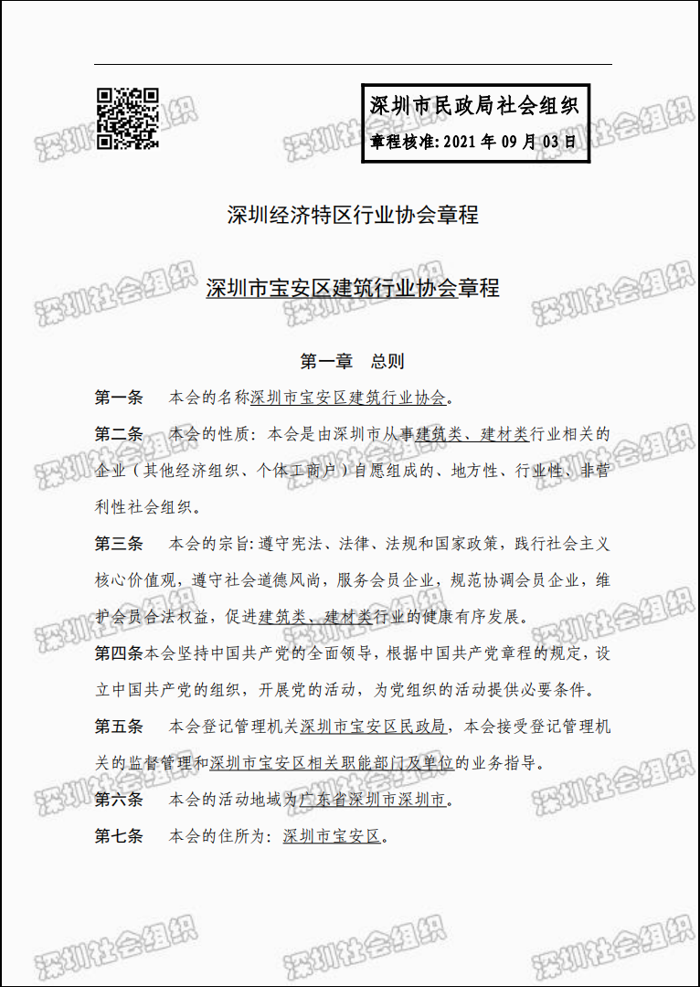 深圳市宝安区建筑行业协会章程